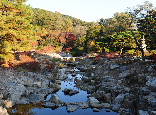 영평 8경 중의 하나인 선유담을 비롯해 광암정, 학소대, 금병암, 옥류대, 취선대, 금광폭포 등의 명소가 있고, 계곡 입구에는 세종의 친필이 보관되어 있는 흥룡사가 자리하고 있습니다.