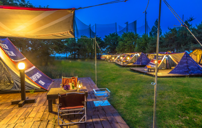 최근의 글램핑 문화에 맞추어 텐트형 글램핑장도 개장 중이니 참고하시기 바랍니다.