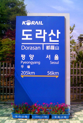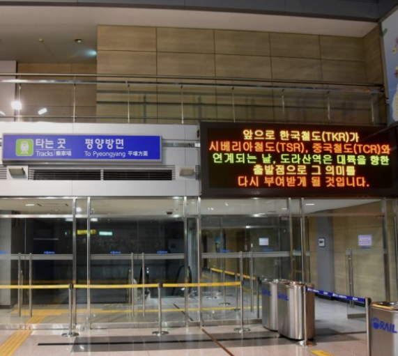 도라산역은 실제 이용할 수 없는 역이지만 2000 남북정상회담에 따른 경의선 복구 사업의 일환으로 세워진 역입니다. 2014년 5월부터 DMZ 트레인이 통근열차를 대체하여 이 역에 정차하였습니다.