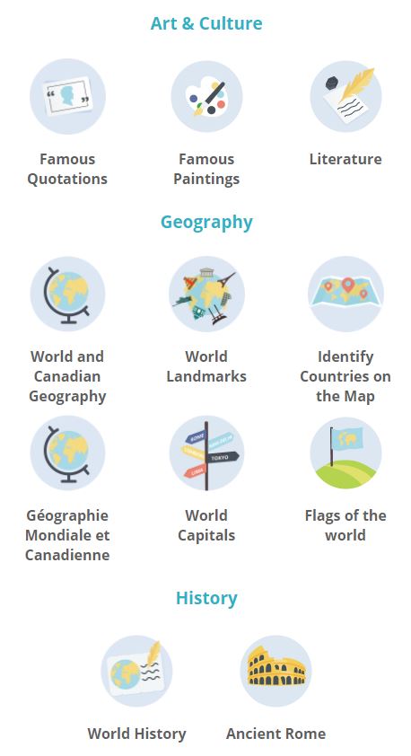 Art & Culture, Geography, History 카테고리의 몇몇 메뉴들은 꼭 영어공부를 위해서라기보다 상식을 키울 수 있어 추천합니다. 자녀분이 있으시다면 함께 풀어보시기 바랍니다. 저는 아이와 나라 수도 맞추기 게임을 자주 했는데 TV로 신서유기 프로를 보면서 수도 퀴즈를 싹 풀 수 있었습니다.