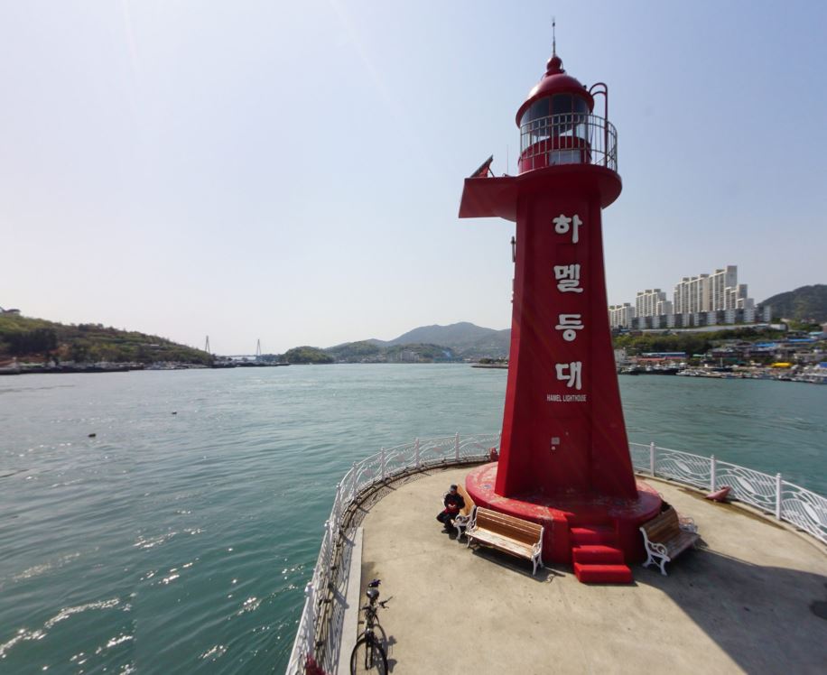 하멜등대는 전라남도 여수시 종화동에 위치해 있는 10미터 높이의 무인등대입니다. 이 등대는 광양항과 여수항을 오가는 선박을 위해 만들었으며 해가 지면 자동적으로 불을 밝힙니다.