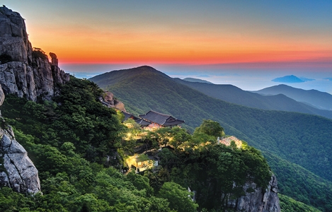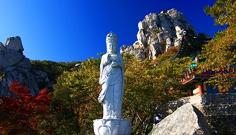 원효대사가 좌선했다는 좌선대 바위가 눈길을 끌며, 쌍흥문이라는 바위굴은 금산 38경 중 으뜸으로 알려져 있습니다. 특히 보리암에 모셔있는 해수 관세음보살의 품 안으로 평온을 구하고자 많은 사람들이 소망을 풀어놓는 곳이기도 한데요. 또한 보리암은 사시사철 간절한 걸음이 머무는 곳으로 유명합니다.