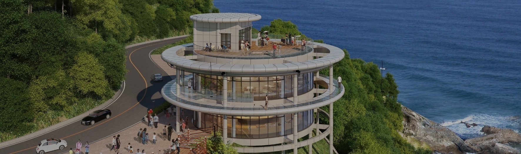 사방이 유리로 된 2층 카페도 관광객들에게 인기가 많으며 3층 루프탑 전망대(노을전망대)는 360도의 써라운드 뷰 길을 제공하여 걸으면서 바다를 볼 수 있는 풍광이 아름다워 인기 있는 관광지입니다.